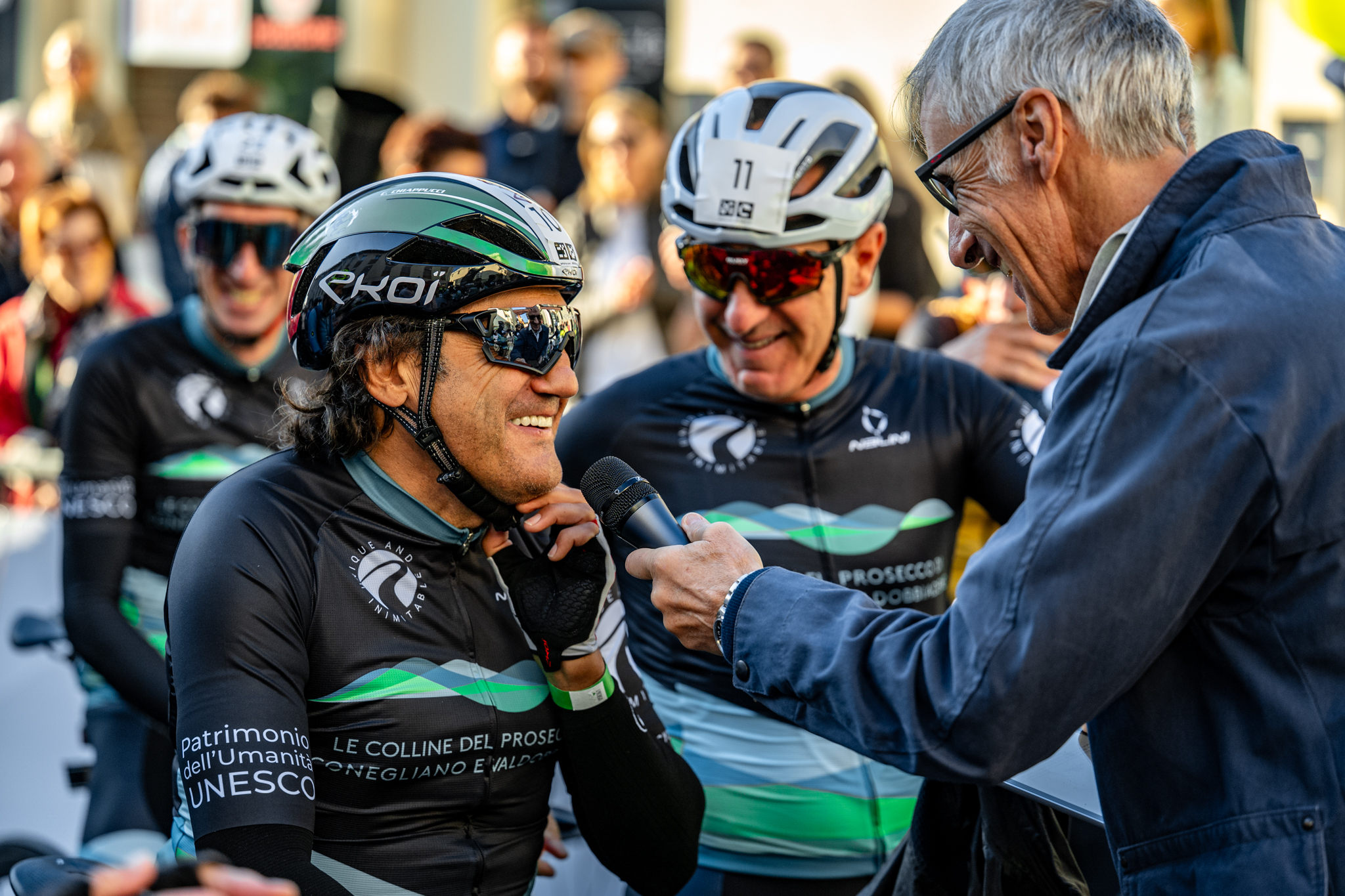 “Prosecco Cycling è tutto fuorché una gara, per questo piace tanto”, ha sottolineato l’ex pro’ Marco Saligari, tornato alla partenza dell’evento di Valdobbiadene dopo qualche anno di assenza. Al suo fianco, il leggendario Claudio “El Diablo” Chiappucci conferma: “La partenza della Prosecco Cycling è qualcosa di unico, ma quello che arriva dopo, lungo il percorso e una volta tagliato il traguardo, lo è ancora di più”. E se lo dice il re della Milano-Sanremo 1991 e l’uomo dell’indimenticabile fuga di 200 chilometri del Sestriere al Tour de France, c’è da crederci.